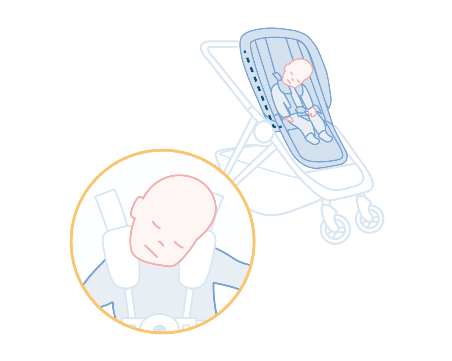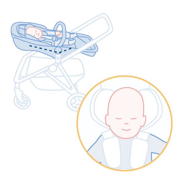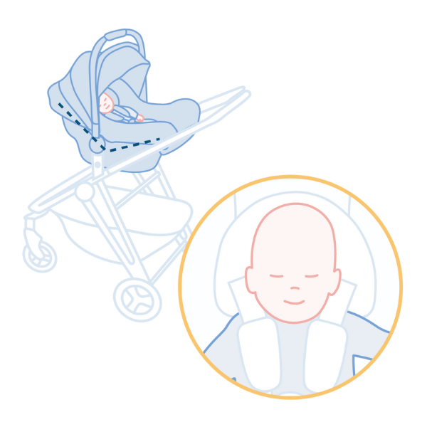 To ensure unrestricted airflow, we recommend using an infant stroller accessory designed to create a more reclined and supported position.