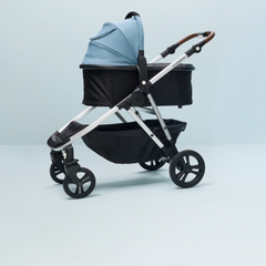 Like everything we do, our product materials are selected with safety, functionality, and durability in mind. Our stroller frame is built with anodized aluminum to support a smooth and secure ride. Our handlebar features a leatherette grip and contains no animal by-products (which is true of all Mockingbird products). Our seat and basket are made of heavy-duty nylon, perfect for easy cleanup of any mess (and yes, there will be cleanups!).