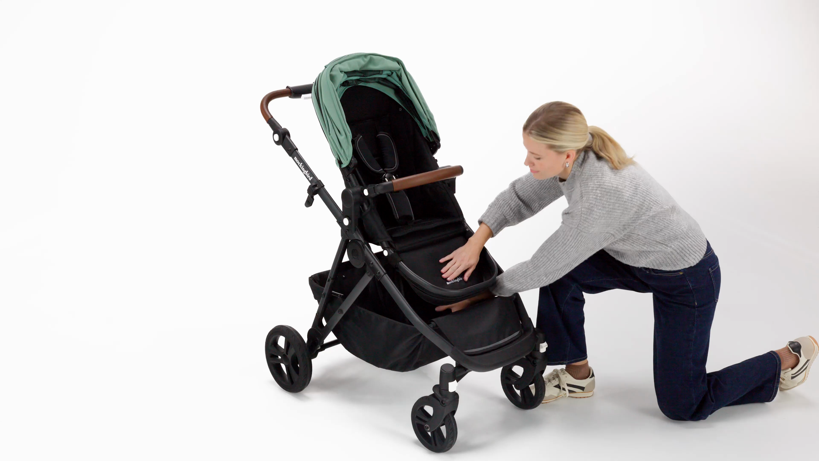 Minimum age: 3 months, or use from birth with Mockingbird’s Infant Seat Insert, Bassinet or Car Seat Adapter (all sold separately)