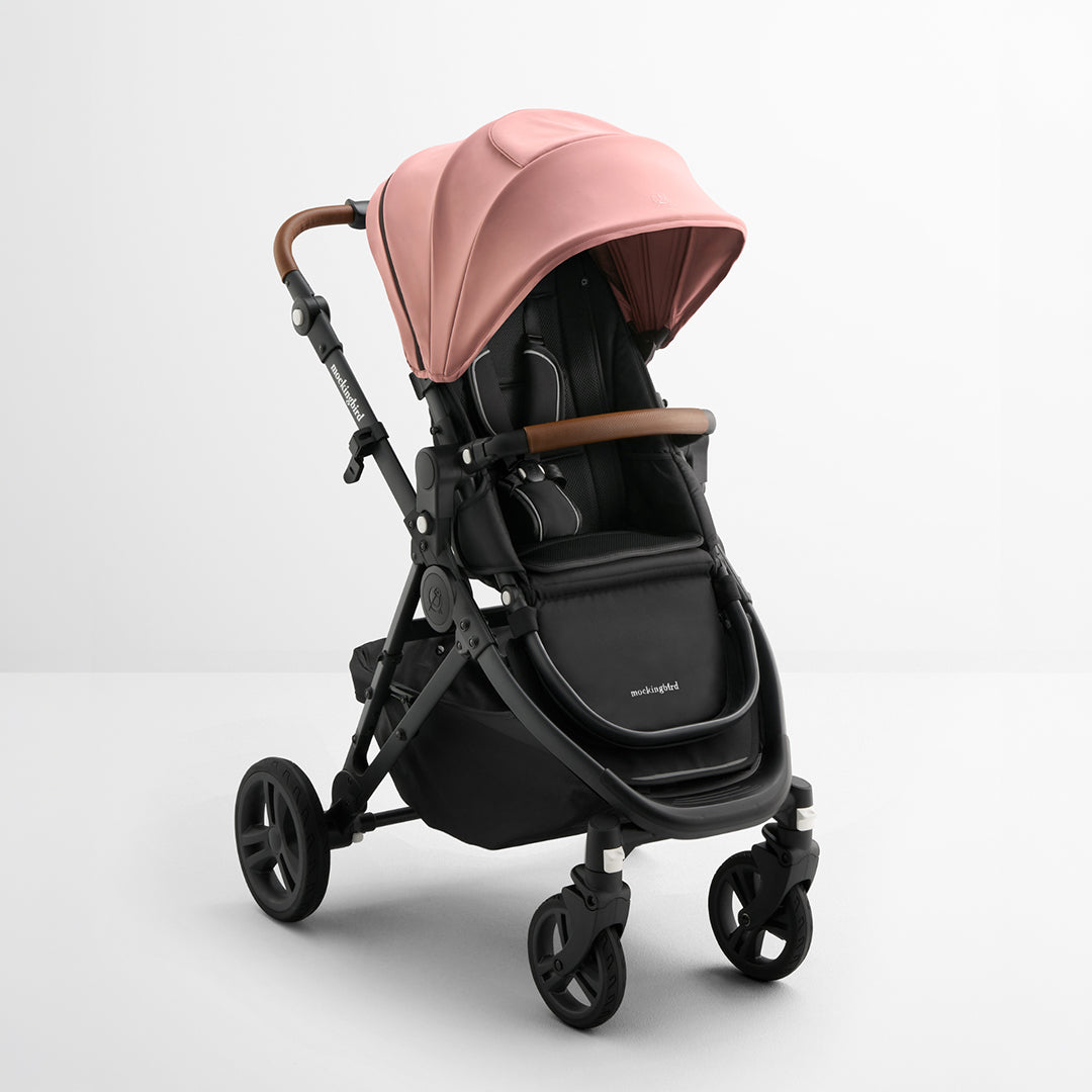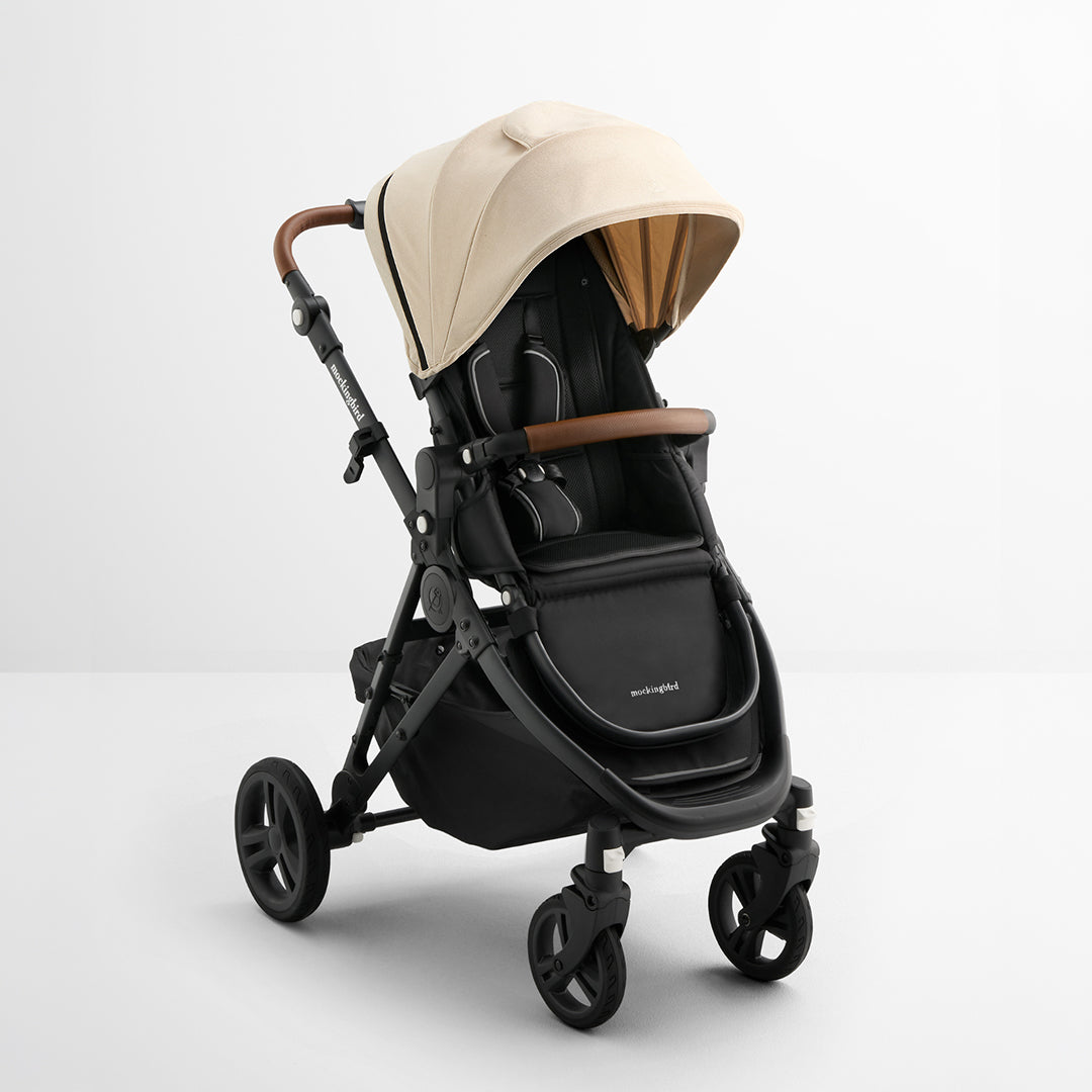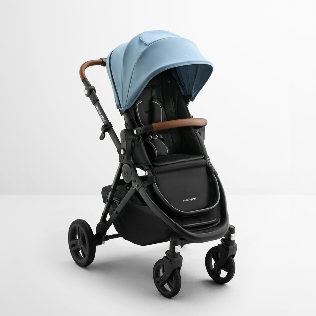 All Mockingbird Strollers come with the stroller frame, seat, wheels, canopy, and child “bumper” bar.